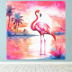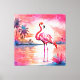 Explore una hermosa imagen acuática de un flamenco rosa parado en el agua al atardecer con palmeras. Descubra la elegancia de las aves tropicales y las serenas escenas costeras. Ideal para los amantes del flamingo y del arte natural (Este diseño hecho con IA). ¡Haga el pedido hoy y acepte la alegría de ir de compras!