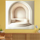 A serene architectural space defined by nested arches and a softly illuminated stairway. The clean geometry, neutral tones, and subtle depth create a calm, contemporary composition suitable for modern interiors.