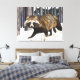 Una pintura digital de un perro mapache en un paisaje invernal. El perro mapache, Nyctereutes procyonoides, es una especie pequeña de canino nativa de partes del este de Asia. Conocido como tanuki en Japón, este canino silvestre tiene marcas que se parecen mucho a las de un mapache y también ha sido conocido por mostrar comportamientos similares incluyendo lavado de comida. Sin embargo, a pesar de sus similitudes, los perros mapaches no están realmente muy relacionados con los mapaches que se encuentran en Norteamérica. El perro mapache se encuentra ahora en todo Japón y en toda Europa, donde ha sido introducido y parece estar prosperando. Sin embargo, históricamente, el alcance natural del perro mapache se extendió por Japón y por el este de China, donde el perro mapache ahora está extinguido en muchas partes. Los perros mapaches viven en bosques y bosques, cerca del agua. Los perros mapaches son caninos únicos ya que son el único mamífero tipo perro que hiberna durante el invierno. Aunque la hibernación de perros mapache no es una hibernación verdadera, significa que los perros mapaches pueden dormir a través de tormentas de nieve severas cuando no hay suficiente comida para permitirles sobrevivir. Los perros mapaches suelen volverse más activos en febrero, cuando el clima más cálido y primaveral empieza a regresar. Hay cinco especies diferentes de perros mapaches encontrados en el este de Asia y en partes de Europa, todos los cuales han sido severamente afectados por la deforestación de sus bosques nativos. También se sabe que los perros mapaches tienen unas patas delanteras increíblemente desterradas que son muy útiles cuando intentan atrapar comida resbaladiza en el agua y cuando trepan árboles. Los perros mapaches son animales carnívoros, lo que significa que sólo cazan y comen otros animales para sobrevivir. Como los perros mapaches pasan mucho tiempo cerca del agua, su dieta se compone principalmente de ranas y peces, junto con roedores, aves pequeñas, huevos e invertebrados como insectos y arañas. El lobo es el principal depredador del perro mapache, ya que se sabe que en los meses de primavera y verano se matan grandes cantidades de perros mapaches, ya que también alimentan a sus jóvenes en crecimiento. Los zorros y los gatos salvajes son los otros depredadores principales del perro mapache junto con los humanos que los han cazado por su carne y pieles gruesas. Las crías de perros mapache suelen nacer cuando el verano comienza a finales de abril y principios de mayo. Después de un periodo de gestación de hasta 12 semanas, el perro mapache da a luz una camada de entre 5 y 16 crías de perros mapache que son ciegas cuando nacen por primera vez. Los padres de ambos perros mapaches ayudan a criar a sus hijos hasta que sean lo suficientemente grandes como para independizarse y comenzar a cazar por sí mismos. Actualmente, aunque las poblaciones de perros mapaches están prosperando en sus hábitats introducidos en Europa, las poblaciones silvestres en el lejano oriente han estado disminuyendo rápidamente principalmente debido a la caza excesiva y la pérdida de hábitat.