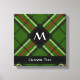 Diseño escocés verde, negro, rojo y blanco. Patrón sin foco. texto personalizado y monograma.