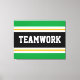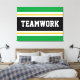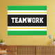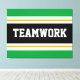 Este diseño deportivo y atlético presenta texto en negrita de TEAMWORK dentro de una banda negra ancha realzada con doble franjas de carreras blancas y amarillas contra rayas exteriores de color verde brillante. El texto de este diseño se puede personalizar.