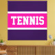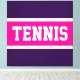 This sporty design features athletic TENNIS text inside bright pink and white racing stripes against deep purple background. The text and colors can be personalized.