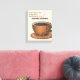 Decoración casera para los amantes del café. Esta divertida impresión de lona de 8" x 10" se verá bien en una cocina, una zona de desayuno, una cafetería e incluso un salón de oficina. El diseño tiene un fondo beige claro. El foco principal, de esta impresión, es una taza de café gigante que tiene un aspecto digital. Encima de la imagen: Si caminas una milla en mis zapatos, acabarás con mi maquillador de CAFÉ. La crema y el azúcar son opcionales.