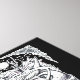 Testigos y demonios, por Brian Benson. Este es un dibujo de tinta del tamaño B5 que hice en 1994. El título es tomado del nombre de una pieza de Albert Ayler. La imagen muestra una cara en perfil: la cabeza contiene tres brujas y varias caras monstruosas.