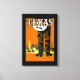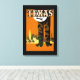 Afiche vintage de arte de Texas, ilustracion de vaqueros y antecedentes de la ciudad. Los colores son tonos de tierra