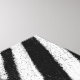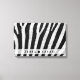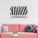 Un fresco patrón de cebra blanco y negro. Bandas alternantes de blanco y negro. De una foto macro de arriba hacia arriba de un lado de las cebras. Un diseño abstracto de moda. Las palabras safari de cebra están impresas en la parte inferior de un borde blanco transparente.