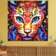 A striking, multi-colored geometric illustration of a leopard’s face, blending vibrant reds, blues, yellows, and purples in a bold mosaic style. The faceted shapes and vivid contrasts create a powerful, modern, and expressive animal portrait that grabs attention and adds an energetic artistic flair to any space. Perfect for lovers of wildlife art, contemporary design, and eye-catching statement pieces.