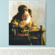 Pintura clásica barroca, obra de arte que ha pasado al dominio público y hace maravillosos regalos y otros productos. Un marco clásico de Vermeer que muestra una actividad doméstica cotidiana en sus habituales tonos suaves y suaves. Johannes (o Jan, o Johan) Vermeer era un pintor holandés barroco conocido por su paleta distintiva de azul y amarillo. Van Gogh estaba influenciado y bastante intrigado por Vermeer, llamándolo un "pintor extraño" cuya paleta "consiste en azul, amarillo de flor de maíz, gris perla, negro y blanco". El trabajo de Vermeer típicamente muestra retratos y escenas de la vida doméstica, y ha pasado de la oscuridad a convertirse en uno de los pintores más admirados de su época. Todos nuestros productos están hechos con imágenes a gran escala que han sido cuidadosamente editadas para ofrecer la mejor resolución, color y detalle posible.