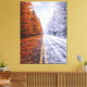 A single road dividing autumn and winter — warm falling leaves on one side, cold snow on the other. This artwork represents transition, contrast, and the moment of change between endings and beginnings. Calm, symbolic, and visually balanced, perfect for modern interiors and reflective spaces.