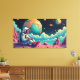 In this dreamy cosmic landscape, an astronaut pauses on a distant world, watching life drift by. A whimsical scene painted in bold colors and nostalgic tones — reminding us that even in silence, the mind never stops exploring.