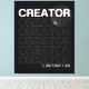 Este diseño de tipografía presenta la palabra Creador, y la cita, "Yo soy el que soy."