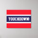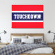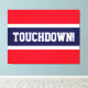 Este diseño deportivo de fútbol presenta texto en negrita TOUCHDOWN! dentro de una amplia franja de centro azul marino contra un fondo rojo brillante. El texto se puede personalizar.
