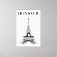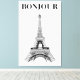 su elegante estampado de lona estirada presenta un bosquejo clásico en blanco y negro de la icónica Torre Eiffel, acompañado del elegante saludo francés "Bonjour". Perfecto para añadir un toque de encanto parisino a cualquier habitación. El diseño minimalista y el encanto atemporal lo convierten en una pieza versátil que complementa varios estilos de decoración casera.