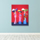 La Catrina, conocida mundialmente como la gran dama de la muerte de México, es una de las representaciones más icónicas del folklore mexicano. Siempre presente desde la era precolombina e inmortalizada por José Guadalupe Posadas con La Calavera Catrina o Calavera Garbancera a principios del siglo XX, esta imagen se ha convertido en simbólica con el Día de los Muertos. Este colorido lienzo envuelto muestra tres elegantes Catrinas preparadas para celebrar la vibrante y macabra fiesta: Día de los Muertos en México.