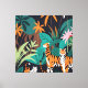 Disfrute de la vibrante escena de la jungla con una majestuosa familia de tigres rodeada de frondosos paisajes tropicales. Colores audaces y rayas llamativas le dan vida a este exótico arte de la vida salvaje.