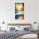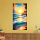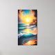 Canvas wall art with a beautiful tropical beach and waves crashing, with a setting sun reflecting across the water.