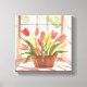 Tulip Basket | Impresión de lienzo de pintura de la ventana de acuarela floral