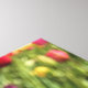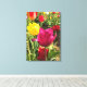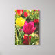 Una hermosa variedad de tulipanes de primavera en la granja de Tulipanes de Madera en Woodburn, Oregón. Vista de arriba hacia abajo de un tulipán rosado-violeta con otros tulipanes coloridos que lo rodean. Foto tomada en abril de 2018.