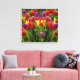 Esta hermosa obra de arte presenta una imagen de alta definición de tulipanes en varios tonos vivos de rojo, violeta y amarillo. Originalmente, los tulipanes se volvieron salvajes en Asia Central y fueron vistos como un símbolo del Imperio Otomano, sin embargo, en el siglo XVI fueron importados a Europa y pronto se les apreció mucho como una mercancía valiosa. Se asociaron con los Países Bajos, donde se cultivaron muchas flores y se comercializaron en los mercados. Desde entonces se han criado muchos híbridos y cultivares hermosos, en todo tipo de colores maravillosos.