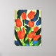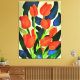 Tulips In Strong Colours Red Floral Art is a painting of colorful spring flowers in blue and red on ecru. A dramatic and flamboyant design for birthdays, anniversaries, and national tulip day: for gardeners, florists, and tulip lovers.