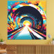 Una vibrante pintura digital del túnel de Tran i. El túnel está cubierto por pintadas de colores. La pintura captura la belleza y la energía del túnel