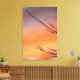 Disfruta de esta impresión de lona "Twigs Against the Sunset", mostrando ramas negras en primer plano con la tranquila mezcla de rojo, violeta y naranja al atardecer.