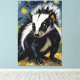 Lienzo un adorable zorrillo en una noche estrellada