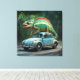 Lienzo Un camaleón encaramado sobre un coche en una pintu