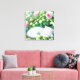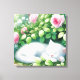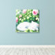Lienzo Un gatito blanco lindo tocando bajo Rosebush