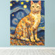Lienzo Un gato en la noche estrellada