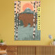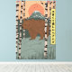 Un gran oso hermoso abrazo el vintage estilo japonés lindo afiche de viaje del oso marrón.