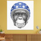 Este diseño presenta un retrato de un chimpancé en un casco patriótico de estilo motorizado.
