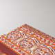 El diseño presenta un diseño textil detallado con una disposición simétrica a lo largo de un eje vertical central. Éstos son los detalles: ・ Paleta de colores: marrón, naranja y blanco. ・ Secciones superior e inferior: estas secciones se reflejan mutuamente, con un diseño ornamentado que se parece a un arco o puerta de enlace, flanqueado por columnas de formas de diamante y bordes intrincados. ・ Sección central: contiene bandas horizontales con patrones detallados, incluyendo motivos circulares y elementos lineales. La combinación de motivos geométricos y florales le confiere un atractivo estético tradicional, por lo que es apto para la moda, la decoración interior o los estudios culturales.