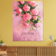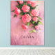 Este atractivo diseño, una pintura digital, muestra una representación antigua de encantadoras rosas rosadas en un tema floral. Incluye texto elegante y personalizable donde puedes insertar un nombre, todo sobre un fondo rosa pastel.