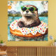 Unas adorables vacaciones de nutrias en un lindo donut flotante mientras se enfría en un río flotan un collage generado por IA de estilo mediático mixto