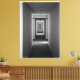 Serie de resúmenes: estudio arquitectónico de lona enrollada que presenta un corredor retrospectivo con entradas de luz que invitan al ojo a la distancia. La geometría de las paredes y de las intersecciones, las formas rectangulares que disminuyen y las zonas alternas de luz y oscuridad se combinan para dar un aspecto y un aspecto muy atractivo, casi infinitos reflejos en los espejos.