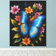 una mariposa azul sobre una flor Popular Canvas Art & Prints fondo, lienzos, papel pintado, poster, dibujo, impresión, pintura, arte, fantasía, estética, composición, marco, invitación, elegancia, contemporáneo, anticuario, mobiliario, hotel, casa, interior, sala de estar, vestíbulo, lujo, casa, vestíbulo, diseño, confortable, arte mural, marco completo, decoración, elegante, habitación, pared, decoración creatividad, ideas, abstracto, generativo, pintura al óleo, ilustracion, artístico, acuarela, inspiración