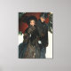 Esta obra de arte, una reproducción fotográfica de 1905, captura a una pareja elegantemente vestida caminando en el brazo bajo un paraguas en la nieve. La pareja está vestida con ropa de calidad, acompañada de gorras, lo que crea un ambiente encantador y nostálgico. El fondo nevado, junto con las ramas de los pinos, realza la sensación de calidez y elegancia, evocando la serena belleza de una época pasada.