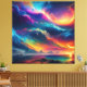 A medida que el crepúsculo se rinde ante la tempestad, el horizonte estalla en una tormenta de matices eléctricos: naranjas feroces, púrpura tempestuosa y rachas de oro fundido chocan y se tejen juntos como una batalla celeste. Esta impresión capta el momento en que la furia de la naturaleza se convierte en su arte, un lienzo vívido donde el caos da origen a una belleza asombrosa.