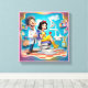 Blancanieves se toma un descanso de los deberes reales de visitar a su dentista favorito. Con un vestido amarillo brillante y una manzana roja en la mano, está lista para un chequeo. Su dentista, con una sonrisa cálida y un pulgar hacia arriba, está feliz de hacerlo. Perfecto lienzo para adornar su oficina de dentista o recepción.