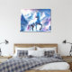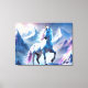Un bello unicornio se alza majestuosamente sobre montañas cubiertas de nieve y empantanadas en un reino de fantasía.