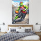 Bring high-energy street vibes to your space with this bold comic-style illustration featuring a fierce alien dominating the basketball court.