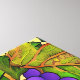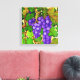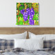 Lienzo en una vid ricamente detallada con uvas violetas profundas y hojas verdes