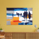 Esta evocadora obra de arte abstracta captura un momento fugaz después de una tormenta, donde las figuras se mueven silenciosamente a través de un paisaje abierto y lavado por la lluvia. Siluetas simplificadas caminan a través de planos superpuestos de azul, gris, blanco y ocre cálido, sugiriendo suelo húmedo, nubes que se retiran y luz que lentamente regresa al cielo. La composición se siente espaciosa y contemplativa, equilibrando tonos atmosféricos fríos con un calor sutil debajo de la superficie.