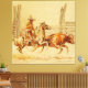 Edward Borein era un artista y pintor norteamericano cuya obra representaba la California colonial española, el viejo Occidente y México. Trabajó como vaquero en California durante 20 años antes de comenzar su carrera artística. Este cuadro se llama "Vaquero y Steer". Un individuo montado a caballo, con un sombrero en la cabeza, persigue enérgicamente a un toro en un paisaje arenoso. El movimiento dinámico se captura con golpes fluidos y tonos cálidos, lo que sugiere un sentido de urgencia y acción en lo que podría ser una escena de un rodeo o rancho de ganado.
