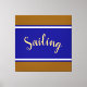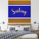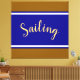 Este elegante diseño deportivo presenta amplias rayas de carreras horizontales de color azul real contra bordes crudos, blancos y dorados. El texto de la secuencia de comandos SAILING en el medio del diseño puede ser personalizado.