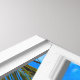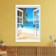 Blue seas Trompe L'oeil Picture con vistas falsas a la playa por la ventana. Efecto especial de la ilusión óptica fotográfica, con ventana abierta y hermosas vistas al mar tropical.