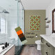 El moderno color verde sabio abstracto con la impresión de lona cuadrada naranja es una buena manera de añadir un toque de color y diseño a su cuarto de baño. Mezclar obras de arte contemporáneo con diseños abstractos traerá vida y personalidad a tu cuarto de baño. El arte mural se coordina bien con el resto de la decoración de una colección de naranja y verde sabio.