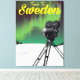 Viajar al poster de cámara de las auroras boreales de Suecia. Cámara vintage que graba las luces norteñas suecas.