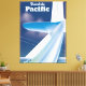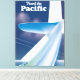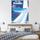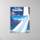 Viaja por el Pacífico, bello afiche de viaje de vuelo vintage o retro estilo de un viejo hidroavión en el océano.